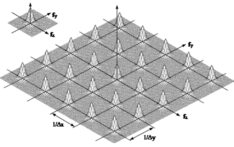 Ответ на этот вопрос дает теорема дискретизации для двумерных (или в общем случае - для многомерных) сигналов, которая утверждает: функция двух переменных λ(x,y), двумерное преобразование Фурье которой