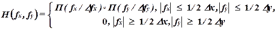 Из рис.1.8. видно, что если соблюдается условие неперекрываемости периодических продолжений спектра FF{λ(iDx,jDy) }, а это справедливо при Δx ≤ 1/2fxmax, Δy ≤ 1/2fymax, то с помощью идеального двумерного ФНЧ с частотной характеристикой вида