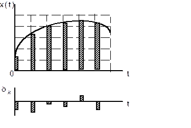 При квантовании по времени функция x(t) непрерывного аргумента преобразуется в функцию дискретного аргумента - решетчатую функцию, представляющую совокупность значений непрерывной функции в дискретные моменты времени.