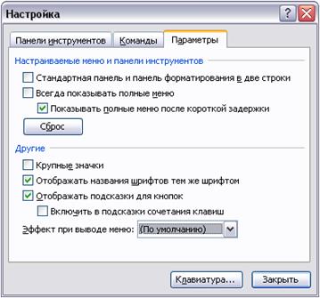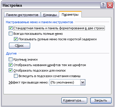 ПРИМЕЧАНИЕ: При открытом диалоговом окне Настройка панели инструментов Стандартная и Форматирование отображаются на двух строках даже если флажок Стандартная панель и панель форматирования в две строки снят. Это позволяет видеть все кнопки панелей инструментов при настройке их и меню.