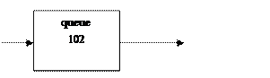 Очередь (с относительными приоритетами или без приоритетов) имеет наименование queue. Если приоритеты не учитываются, то транзакты упорядочиваются в очереди в порядке поступления. Когда приоритеты учитываются, транзакт попадает не в «хвост» очереди, а в конец своей приоритетной группы.