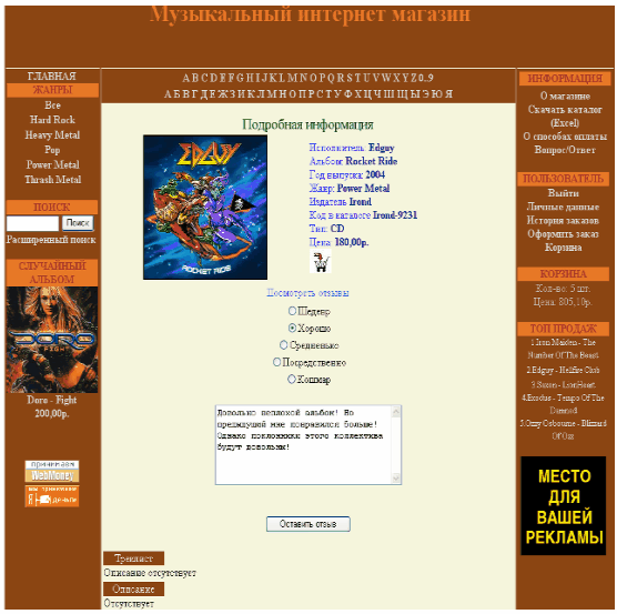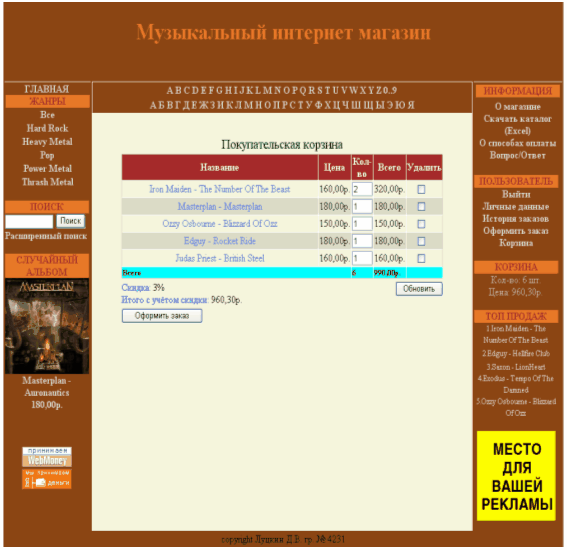 Дипломная работа: Интернет-магазин по продаже музыкальных CD и DVD дисков