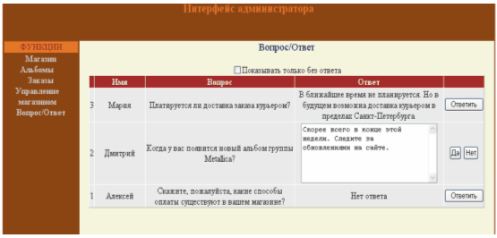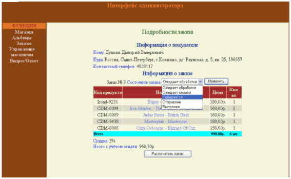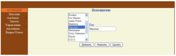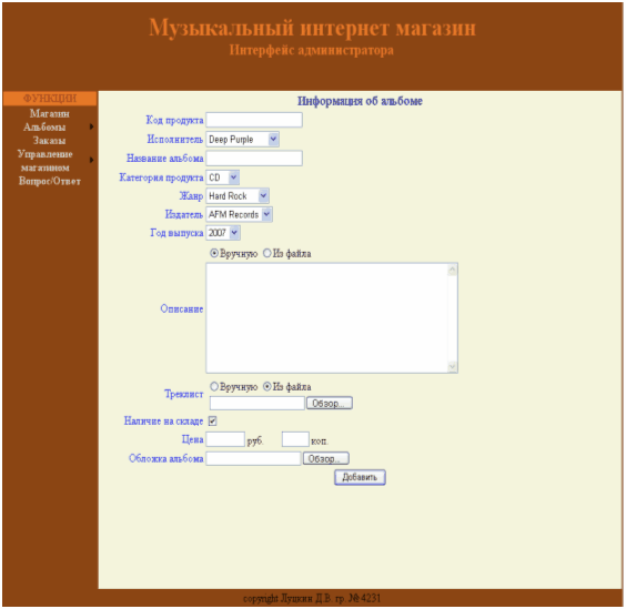 4.8 Основные элементы интерфейса администратора музыкального Интернет-магазина