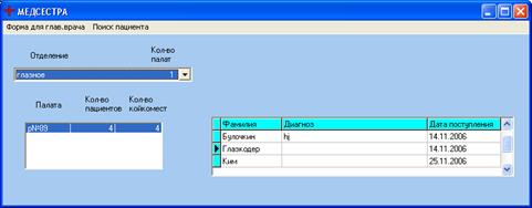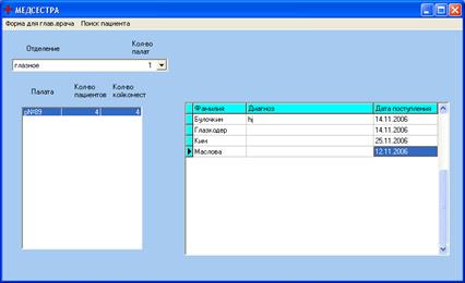 1.1.3 Наименование ПК: программа, позволяющая управлять базой данных пациентов по отделению и номеру палат
