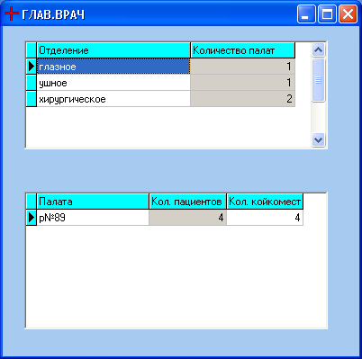 1.3.1 При помощи разрабатываемой оболочки станет возможным создавать и использовать базу данных в любой больнице. Структура базы знаний составляется в виде реляционных таблиц. База данных будет способна работать практически в любых областях больничной деятельности, решая задачи со скоростью значительно превосходящей человеческие возможности.