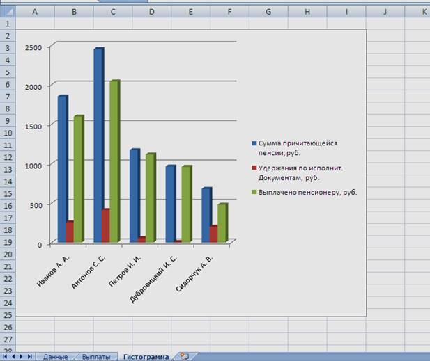15. На рабочем листе Гистограмма MSExcelпостроить гистограмму по данным таблицы «Свод лицевых счетов пенсионеров» за январь и февраль 2006 г. (рис. 2.9).