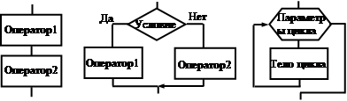 Наиболее часто детально проработанные алгоритмы изображаются в виде блок схемы согласно требованиям структурного программирования, при их разработке используются условные обозначения согласно ГОСТа («следование», «ветвление», «цикл»). |