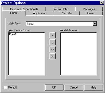 Параметры разбиты на группы, каждая из которых располагается в соответствующем окне на своей странице. После установки отдельных параметров Delphi автоматически вносит нужные изменения в соответствующие файлы проекта. Файл параметров проекта представляет собой текстовой файл, в котором построчно располагаются параметры и их значения. |