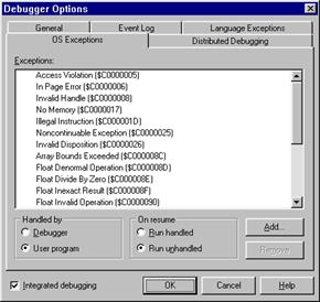 Средства отладчика доступны: - с помощью команд пункта меню Run (Выполнение); - и подменю View / Debug Windows (Просмотр/Окна отладки). Действия отладчика: - выполнение до указанного оператора (строки кода), - пошаговое выполнение приложения, - выполнение до точки останова, - включение и выключение точек останова, - просмотр значений объектов, в окне просмотра, - установка значений объектов при выполнении приложения. Установка параметров отладчика выполняется с помощью команды Tools / Debugger Options (Параметры отладчика). |