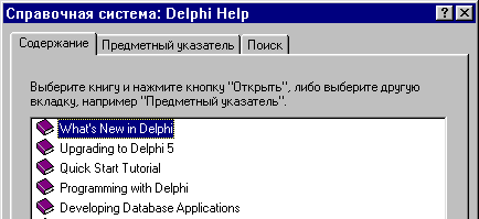 Вкладка Содержание окна предоставляет доступ к справочной информации в виде оглавления. Последовательно можно переместиться в требуемое место справочной системы. Вкладка Предметный указатель позволяет выполнить поиск информации с помощью ключевого слова. Пользоваться ей проще, чем вкладкой Содержание. Вкладка Поиск позволяет выполнить поиск и отображение всех разделов справочной системы, в которых встречается указанная фраза или слово. |