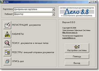 Система «ДЕЛО», разработанная компанией «Электронные Офисные Системы» (ЭОС) – комплексное промышленное решение, обеспечивающее автоматизацию процесса делопроизводства, а также ведение полностью электронного документооборота организации. Система эффективно используется как в небольших коммерческих компаниях, так и в распределенных холдинговых или ведомственных структурах.