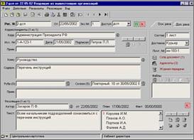 | многократная регистрация одних и тех же документов в журналах и картотеках различных структурных подразделений | однократная первичная регистрация документа в любом подразделении и последующее автоматическое отслеживание движения и исполнения документа в электронных картотеках подразделений |