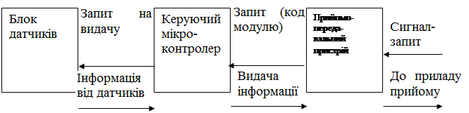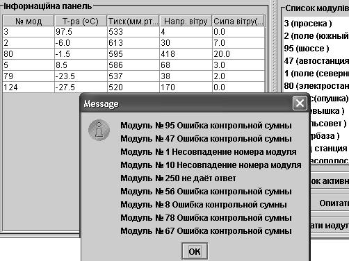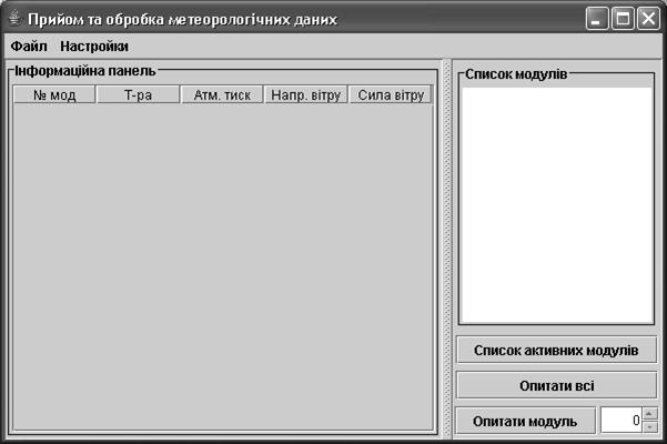 - отримувати дані, що були щойно виміряні, від модулей збору метеорологічної інформації, далі – модулі, за допомогою радіозв’язку;