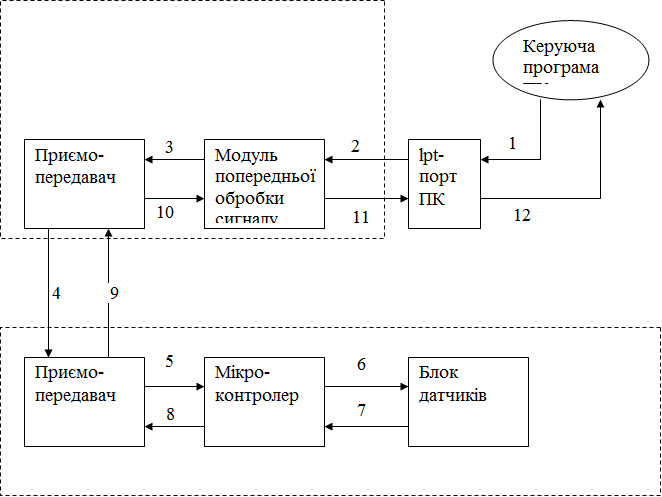 приймання даних, що надходять з lpt-порту ПК;