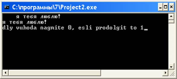 write('dly vuhoda nagmite 0, esli prodolgit to 1');