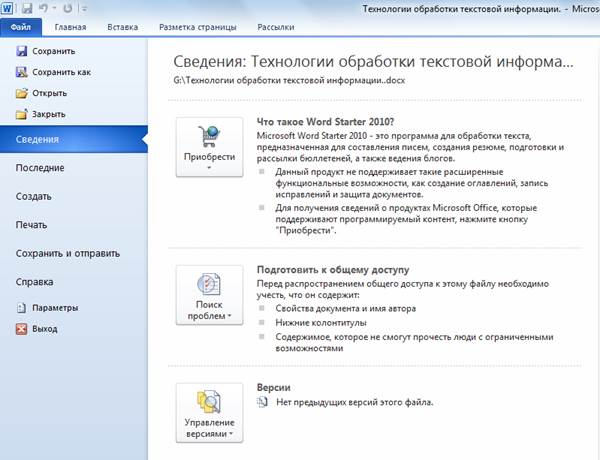 3. Пользовательский интерфейс Microsoft Word 2010............................................................ 13