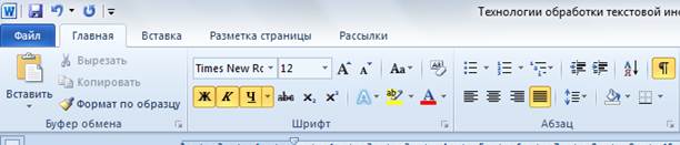 Первая строка основного окна, являющаяся строкой заголовка, содержит название пакета – Microsoft Word.