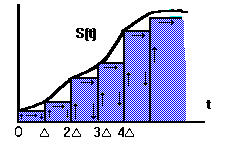 Рассмотрим некоторый сигнал S(t), причем для определенности скажем, что S(t)=0 при t<0. Пусть {D,2D,3D,...} - последовательность моментов времени и {S1,S2,S3,...} - отвечающая им последовательность значений сигнала. Если S0=S(0) - начальное значение, то текущее значение сигнала при любом t приближенно равно сумме ступенчатых функций :