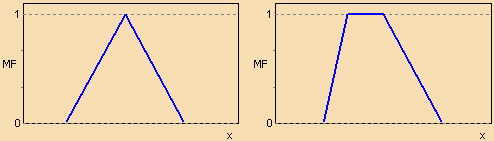 Существует свыше десятка типовых форм кривых для задания функций принадлежности. Наибольшее распространение получили: треугольная, трапецеидальная и гауссова функции принадлежности.