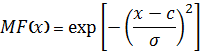 и оперирует двумя параметрами. Параметр c обозначает центр нечеткого множества, а параметр σ отвечает за крутизну функции.