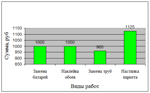 13.Для представления результатов расчета стоимости каждого вида работ в графическом виде построим диаграмму (рис. 7).