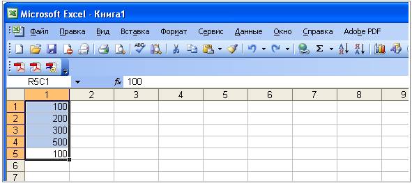 №4. На листе выделена группа ячеек, как указано на рисунке. Как получить их сумму?