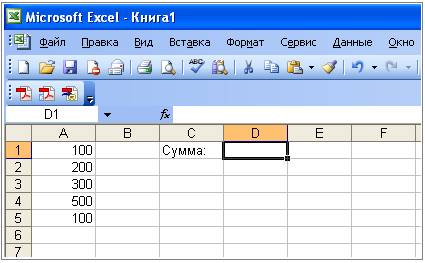 c) Нажать значок «S» в панели инструментов, после чего сумма появится в ячейке под выделенными