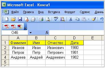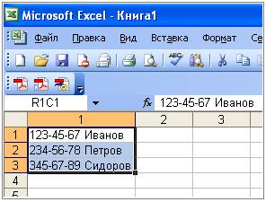a) Используя пункт «Текст по столбцам» меню «Данные»