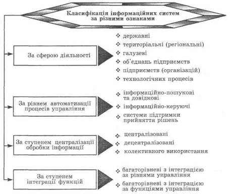 Рис. 1. Класифікація інформаційних систем за різними ознаками