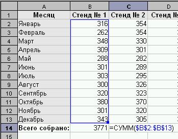 А во втором – перед буквами ($B2:$B13); область исходных данных будет перемещаться только между строками, оставаясь в одних и тех же столбцах.