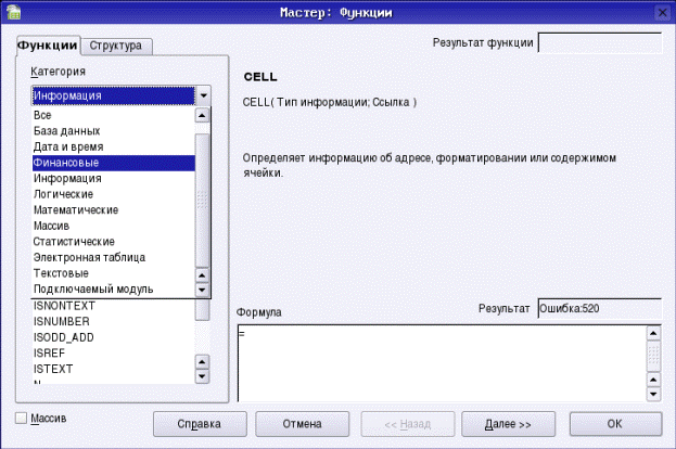 Программа электронной таблицы OOo Calc позволяет использовать несколько сотен встроенных функций различных категорий.