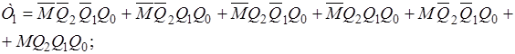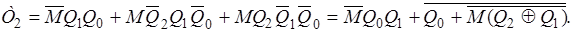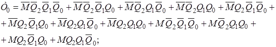 Поставлення завдання (вихідне завдання функціонування): необхідно синтезувати трирозрядний додаючий двійковий лічильник на основі Т -тригерів, алгоритм функціонування якого визначає керуючий сигнал М . Якщо М = 0 , лічильник працює як звичайний лічильник прямого рахування; якщо М = 1 , лічильник працює в коді Грея. Зміна керуючого сигналу М відразу веде до зміни режиму роботи, тобто наступний стан лічильника буде належати вже іншому коду.