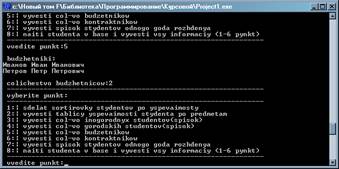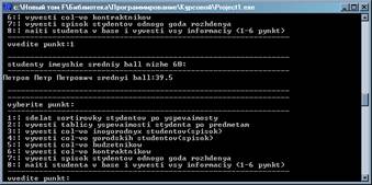 cout<<"\n 7:| vyvesti spisok stydentov odnogo goda rozhdenya";