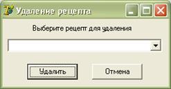При выборе подпункта “Удалить рецепт” управление передается в модуль Udal_rec.db (удаление рецепта).