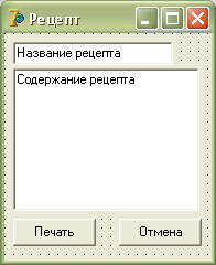 При выборе подпункта “Справочник рецептов” появляется окно: