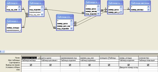 Предметом области автоматизации являются некоторые должностные функции отдела сбыта. В отделе сбыта имеется план выпуска готовой продукции составленный на три месяца. В соответствии с этим планом цеха выпускают продукцию, но фактический выпуск продукции зависит от многих факторов и может отличаться от планового. В отдел сбыта поступают также цеховые накладные, которые отражают фактический выпуск продукции и сдачу ее на определенные склады. Задача отдела сбыта – сделать анализ выполнения плана сдачи изделий на склады. Для этого необходимо выбрать плановые и фактические данные за определенный период по определенному складу и проанализировать отклонение факта от плана.