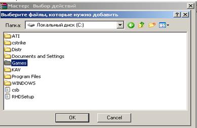 - Выберете в рабочем поле диалога папку или файл, который будете упаковывать, - выделите их. Щелкните мышью по кнопке ОК .