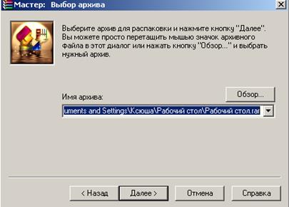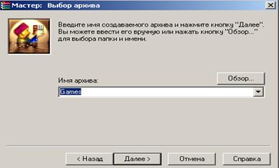 - На экране появится диалог Мастер: Выбор архива , как показано на рис. 1.3. В поле ввода Имя архива введите название будущего архива.