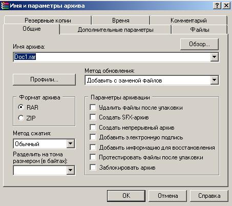 Рис. 1.4. Диалог Мастер: Параметры архивации