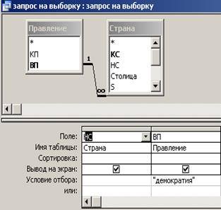4.4. Создадим запрос “на выборку”, с помощью которого выведем страны с демократическим видом правления.