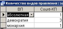 4.6. Создадим сложный запрос, с помощью которого будет выводиться количество видов правления.
