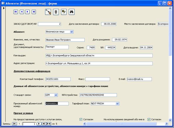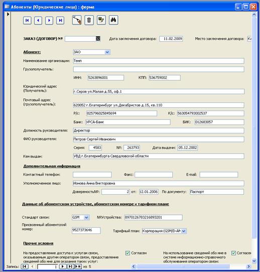 Все сделки, связанные с оказанием услуг сотовой радиотелефонной связи, начинаются с заключения договора. Поскольку увеличение доли потенциальных клиентов, влечет увеличение прибыльности компании, в результате происходит увеличение договоров компании. Поэтому не мало важную роль в компании, где количество договоров может превышать тысячи, играет эффективный анализ, учёт и контроль договоров. Обработка данных, позволяет отслеживать в каком отделе находится договор, на какой он стадии оформления, проанализировать вклад каждого в количество привлеченных клиентов и т.д. Получаемая в процессе такого анализа информация дает возможность принимать обоснованные решения при установлении договорных отношений с клиентами. Исходя из этого естественно, что такого рода информация должна быть полной, достоверной и своевременной. При ограничении сроков предоставления нужной документации, значительных объемах имеющихся данных и разделении их в пространстве велика вероятность появления ошибок, достичь указанных параметров информации можно, лишь используя преимущества информационных технологий. Наиболее эффективным в данном случае является создание единой базы хранения информации о договорах и автоматизации процессов обработки информации.