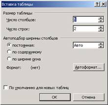 на панели инструментов). При этом на экране появится диалоговое окно Вставка таблицы