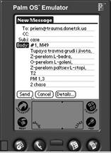 2) После оказания помощи врач СМП производит шифровку информации о больном (согласностандарту),вводеевКПКPalmиотправку поэлектроннойпочтеконсультанту (дежурномуврачу).