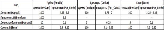 Вклад – денежные средства, внесенные физическим или юридическим лицом в финансовое учреждение. Таким финансовым учреждением в условиях рассматриваемой предметной области является Сбербанк.