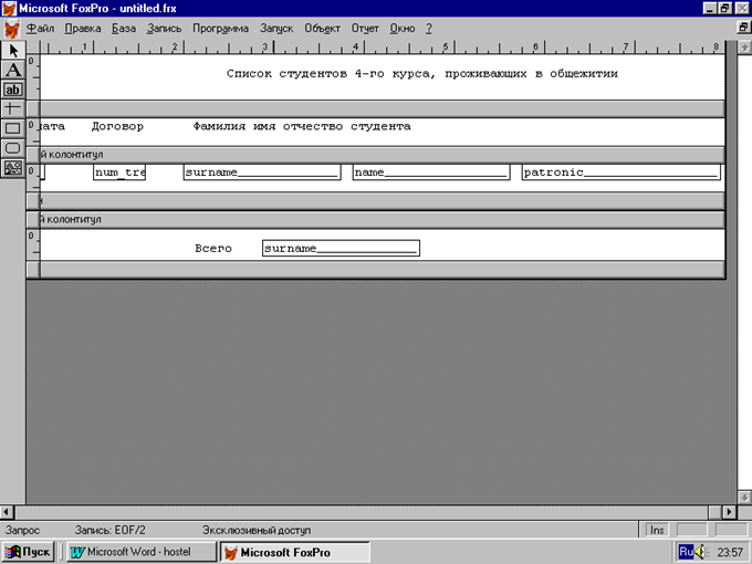 На рис 7. представлена схема отчета “Список студентов 4-го курса”