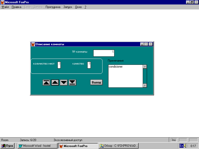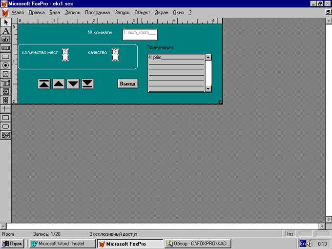 | 2 | Номер комнаты | Num_room | FK | NUMERIC | 3 |