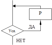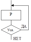 4) ДЕЛАТЬ-ПОКА-НЕ – это алгоритм, в котором оператор P выполняется всегда хотя бы один раз, а затем, пока выполняется условие, выполнение оператора P повторяется. Как только условие станет ложным, повтор выполнения оператора P прекращается и управление передается на следующий блок.
