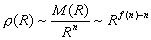 Если объект (система) удовлетворяет соотношению M(R)~Rf(n) , где f(n)<n, то такой объект называется фрактальным. Его плотность не будет одинаковой для всех значений R, а масштабируется так: