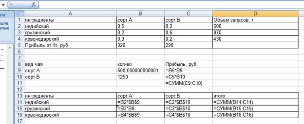 Целевая функция- общая сумма прибыли от продажи искомого количества чая сортов А И Б.